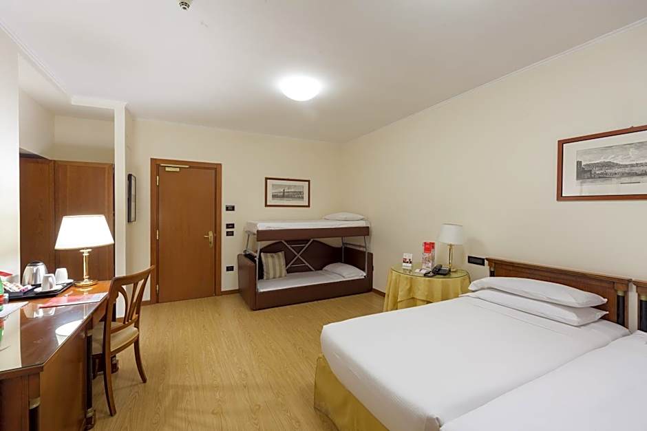 Providing free toiletries, this family room includes a private bathroom with a bath, a shower and a bidet. The air-conditioned family room provides a flat-screen TV with satellite channels, soundproof walls, a mini-bar, a tea and coffee maker as well as city views. The unit offers 2 beds.